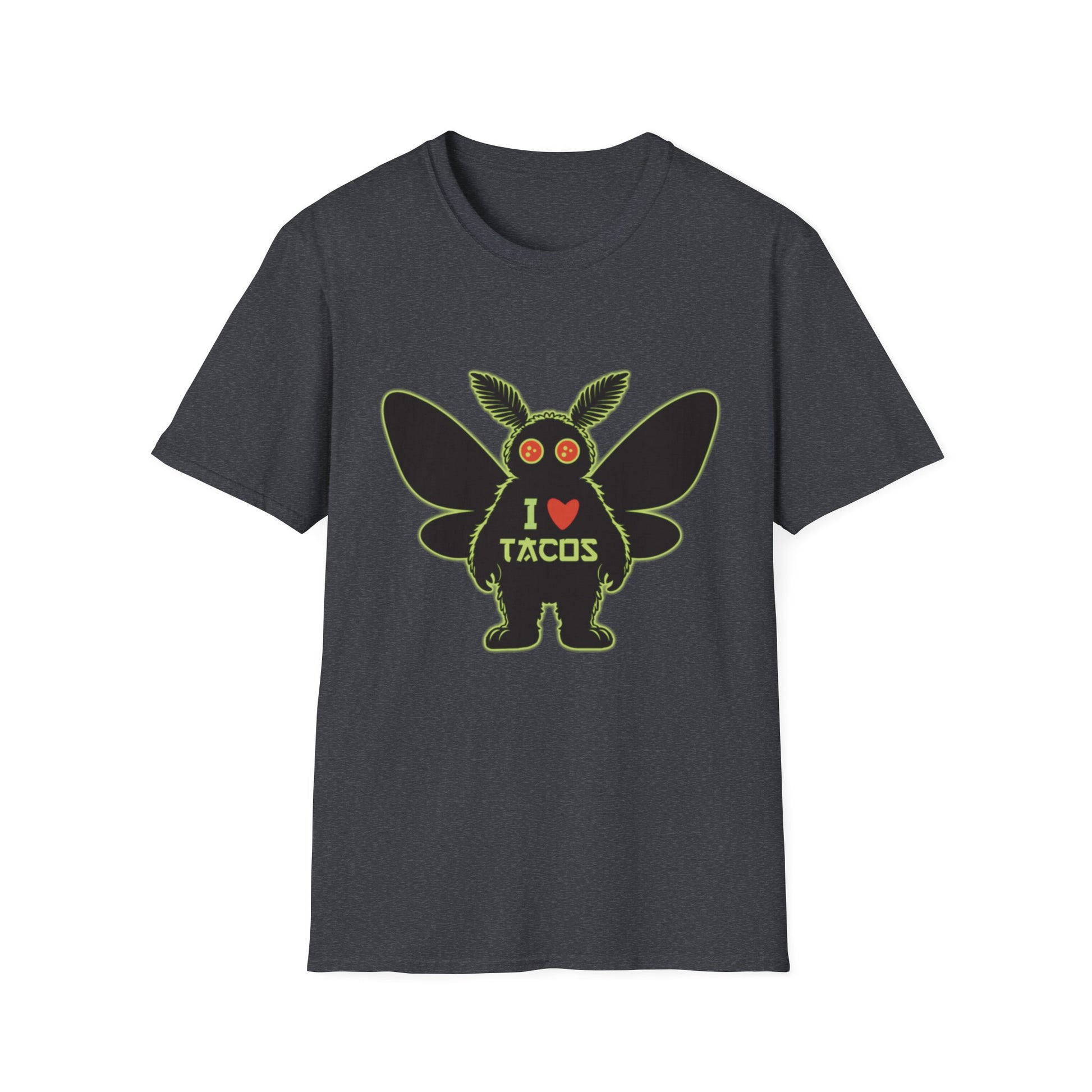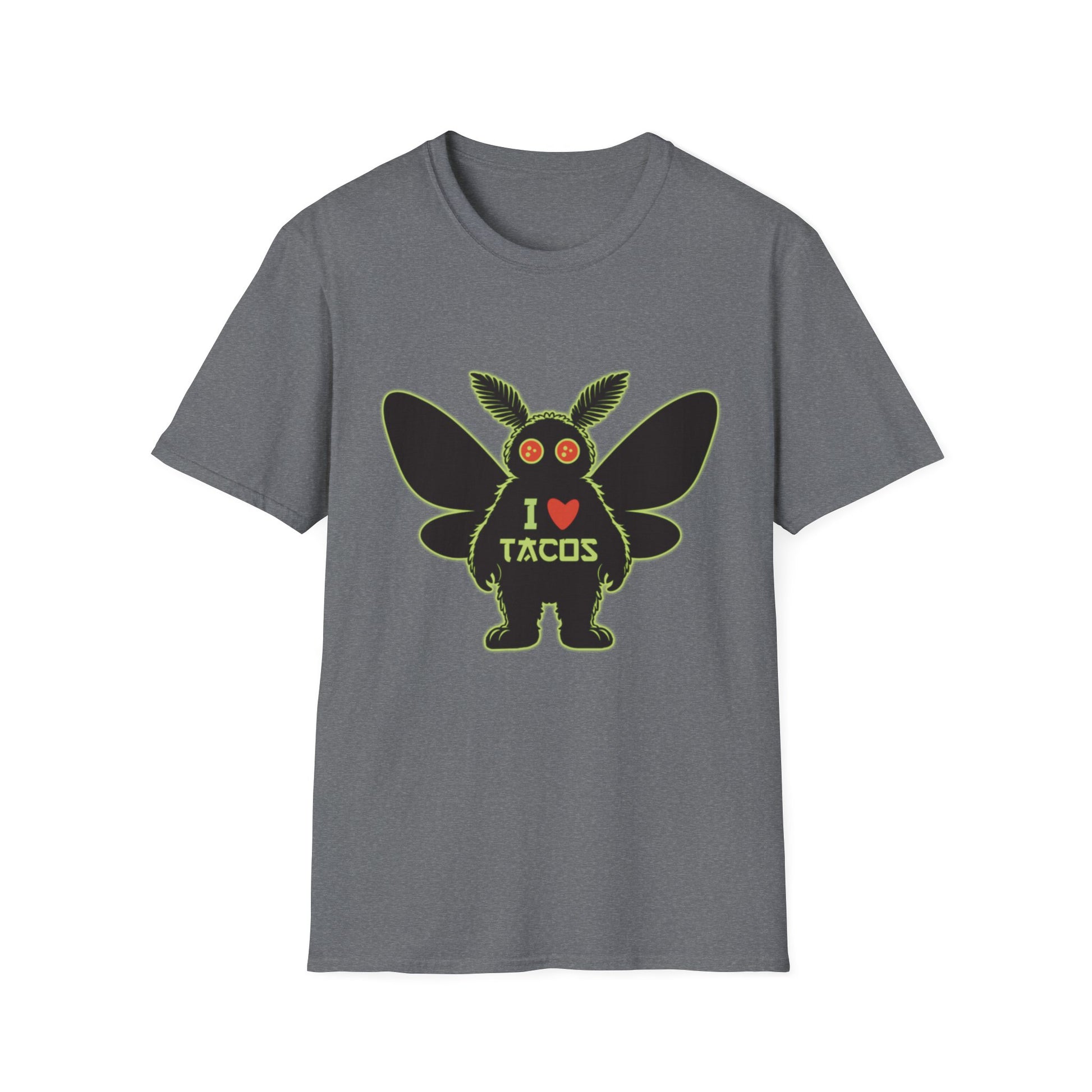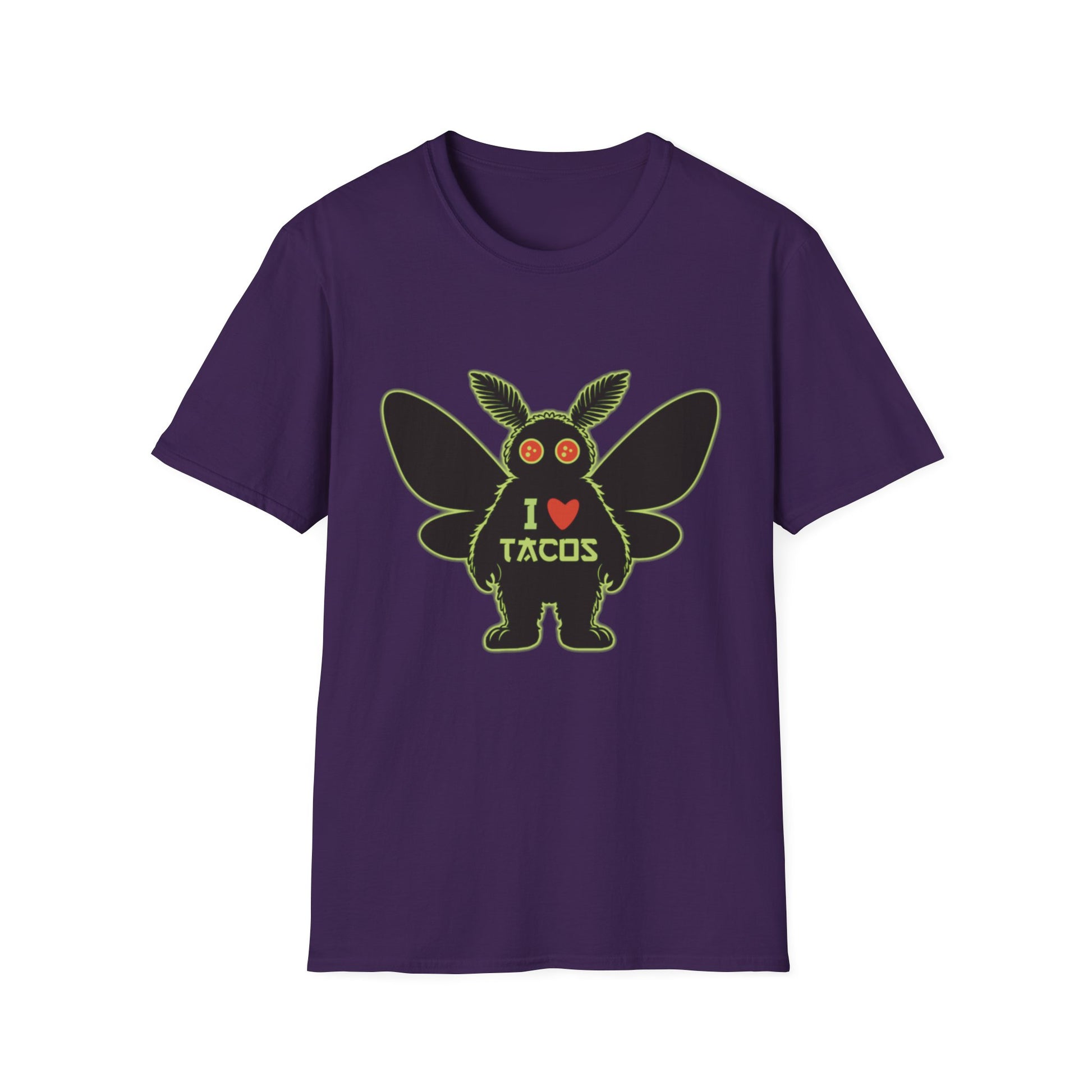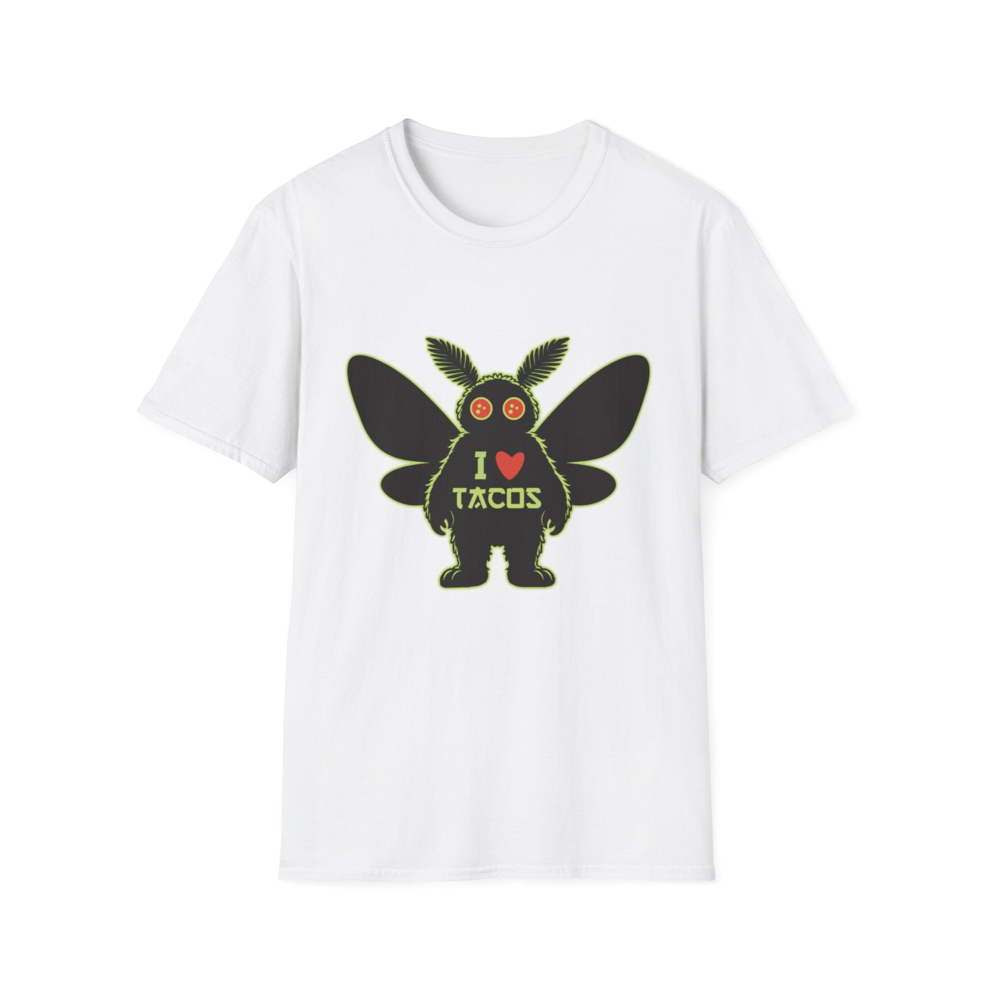 Mothman loves Tacos Unisex Softstyle T-Shirt, Funny Taco Lover Tee, Foodie Gift, Casual Wear, Perfect for Taco Tuesday, Unique Graphic Shirt