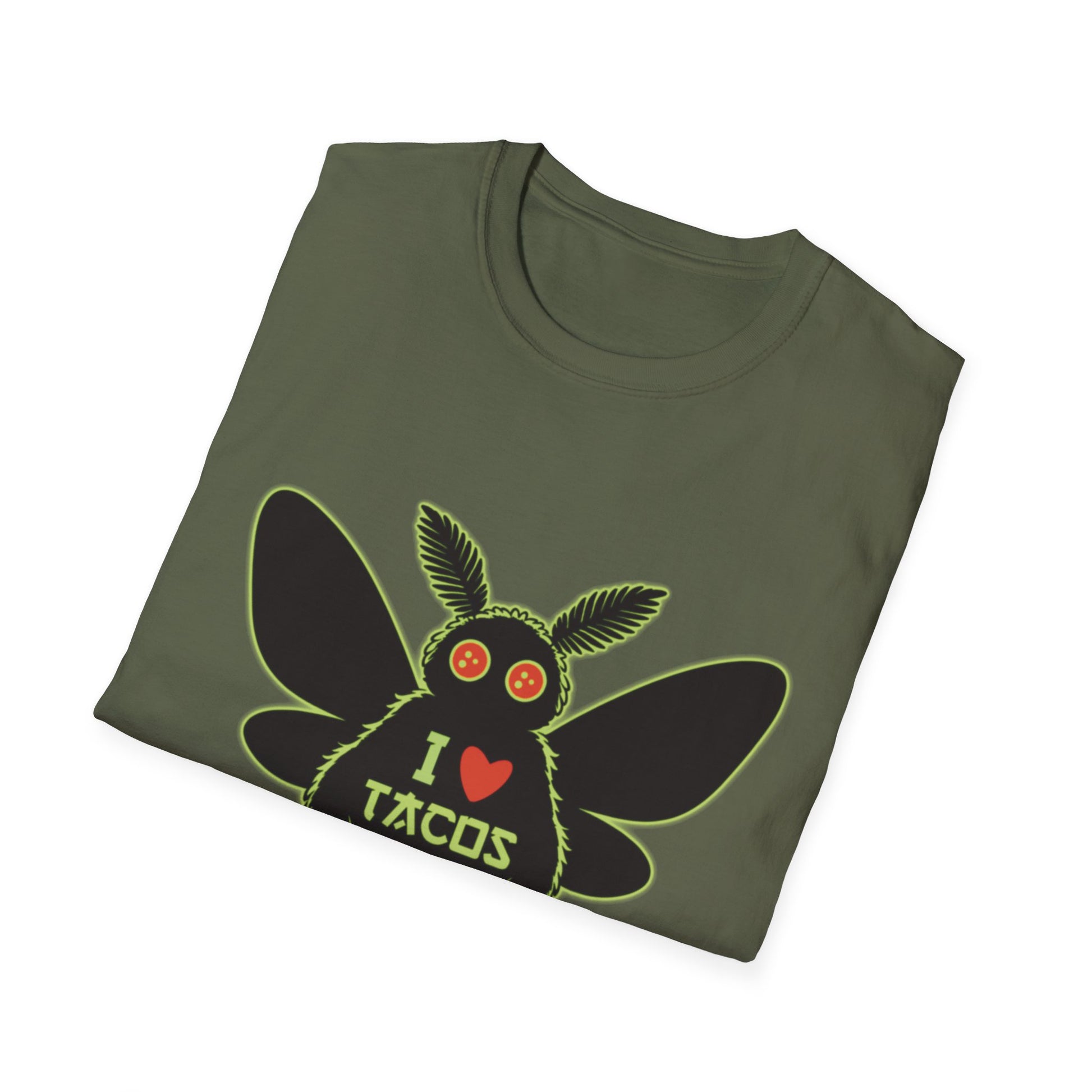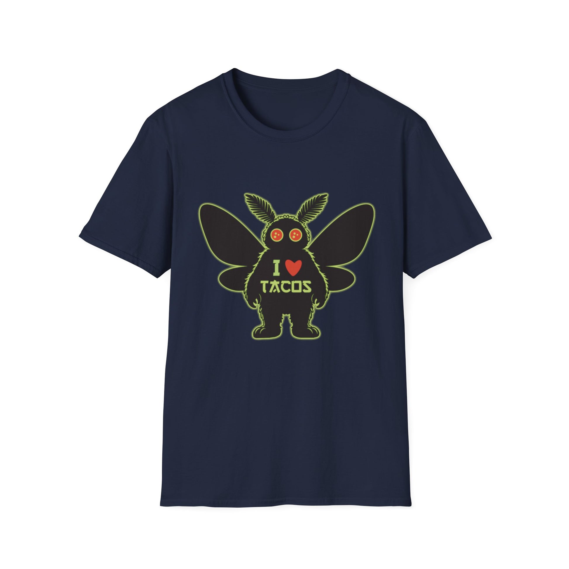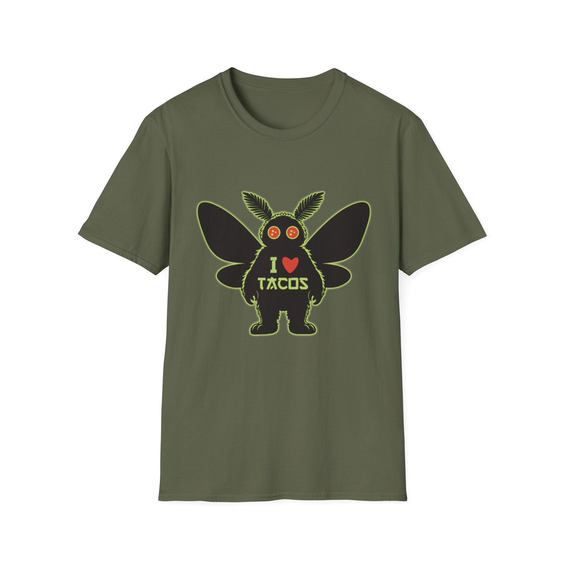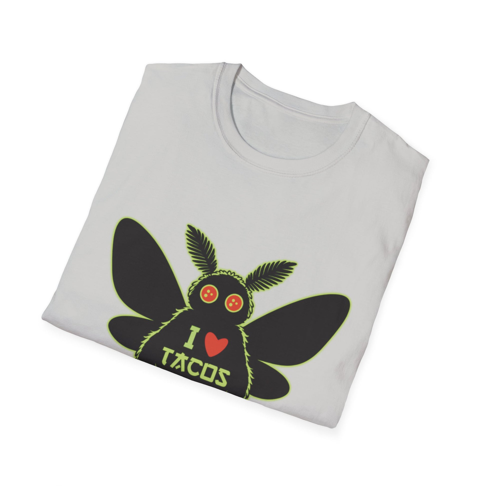Mothman loves Tacos Unisex Softstyle T-Shirt, Funny Taco Lover Tee, Foodie Gift, Casual Wear, Perfect for Taco Tuesday, Unique Graphic Shirt