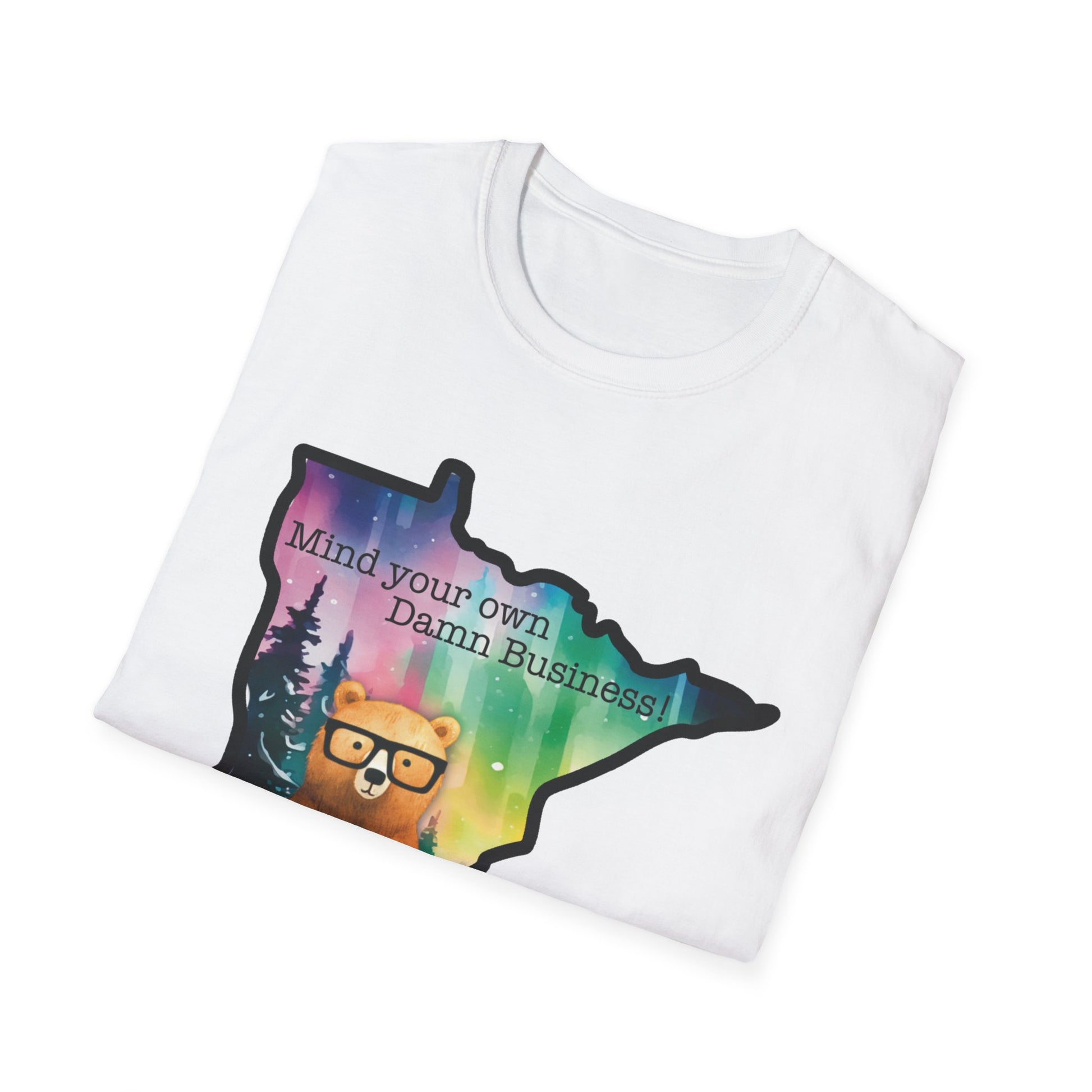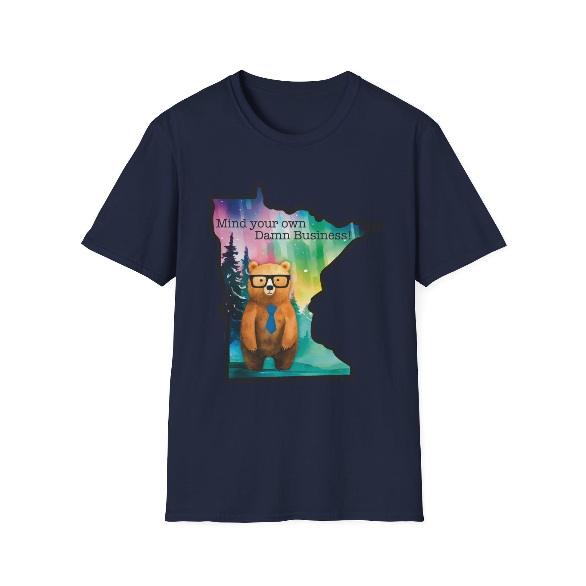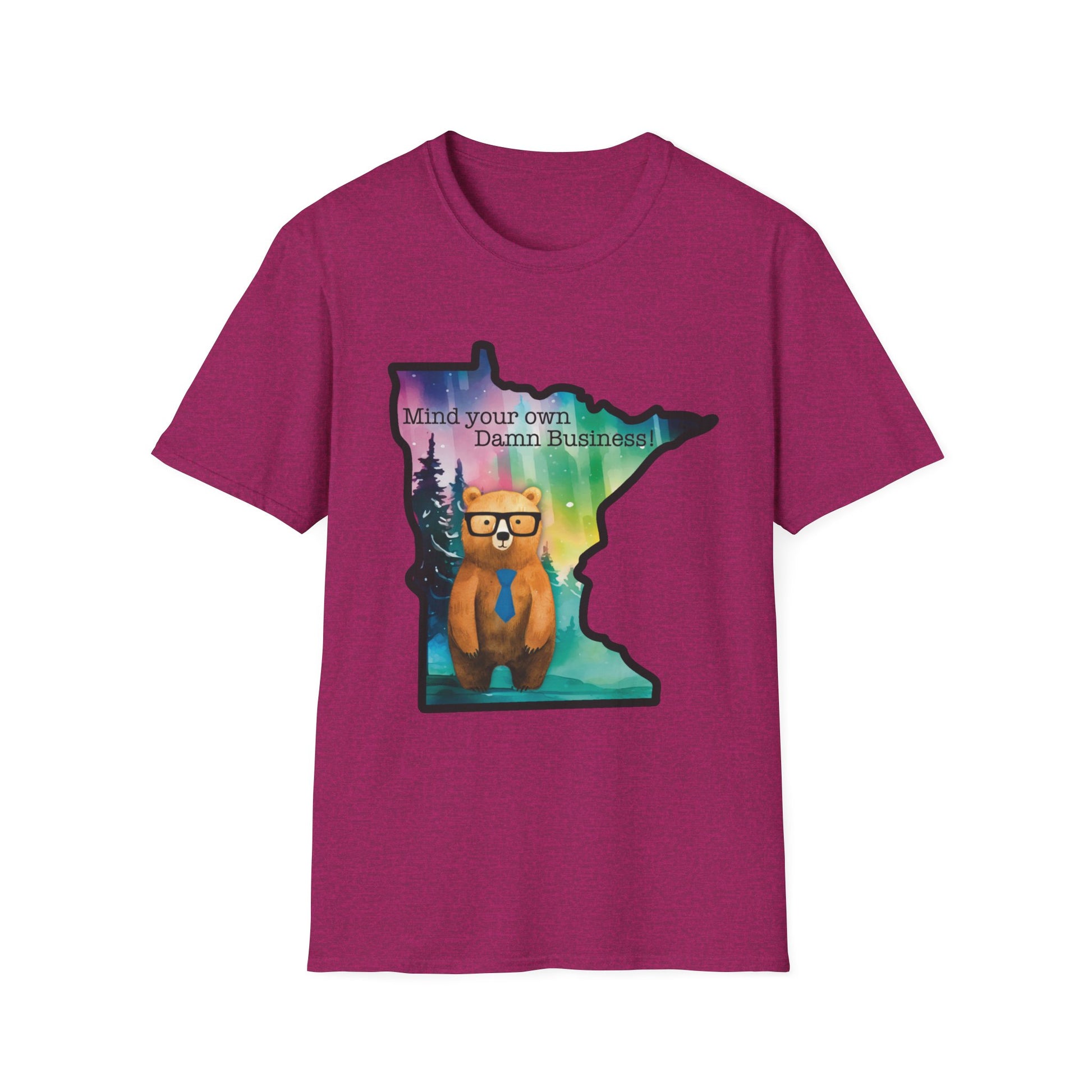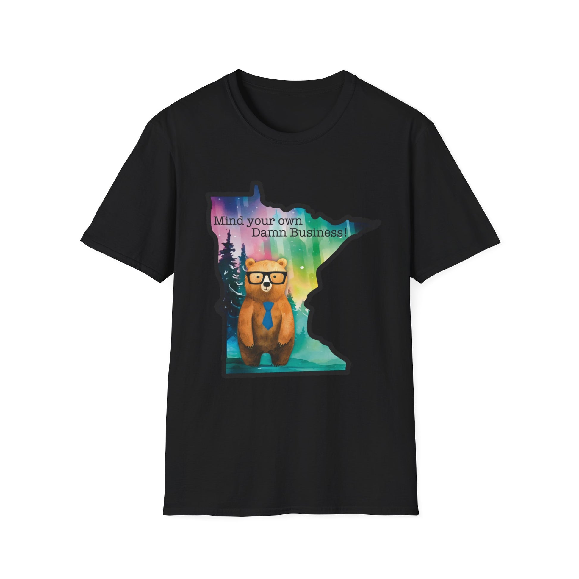 Whimsical Minnesota Bear T-Shirt, Mind Your Own Damn Business Tee, Casual Gift, Fun Apparel, Northern Lights Style, Unique Souvenir
