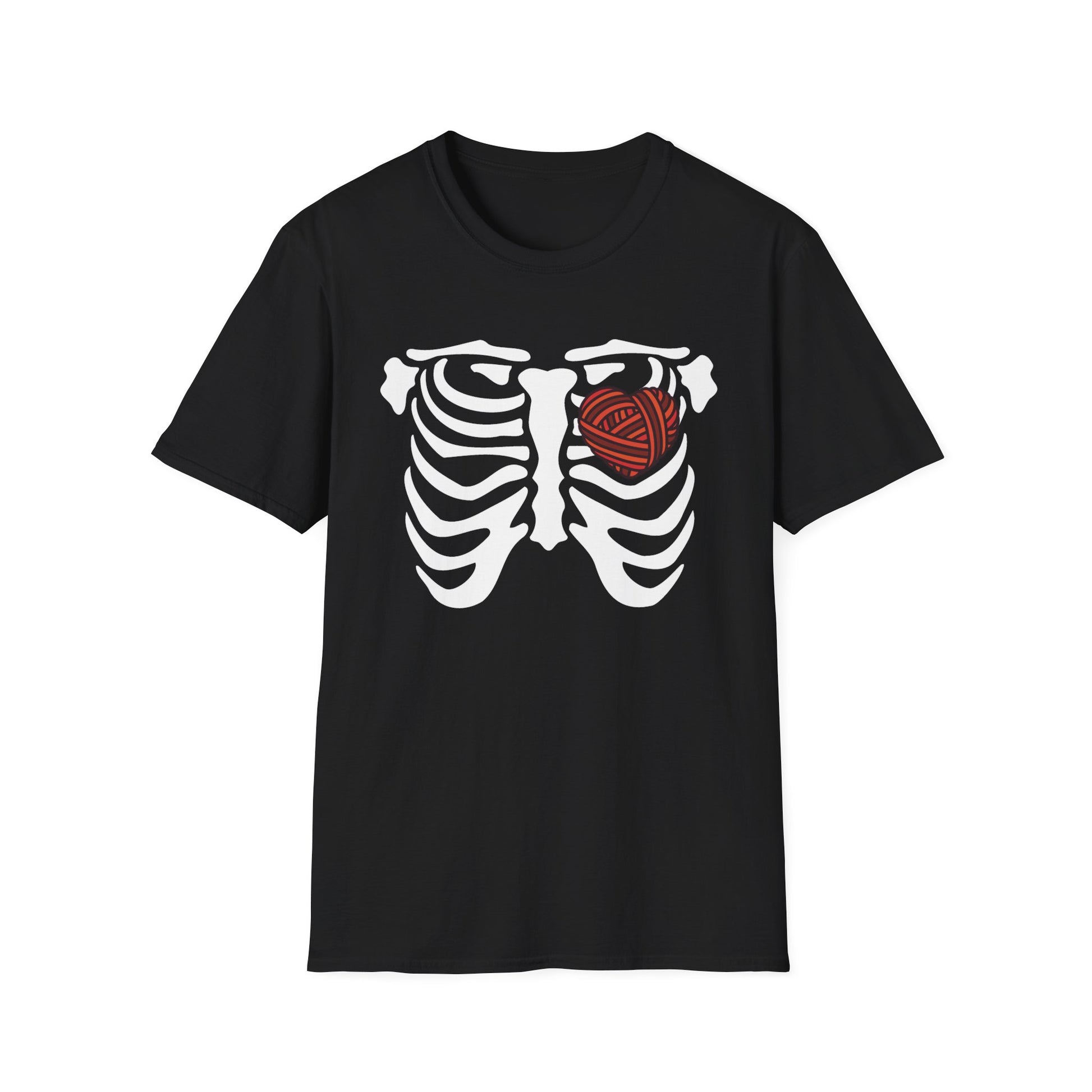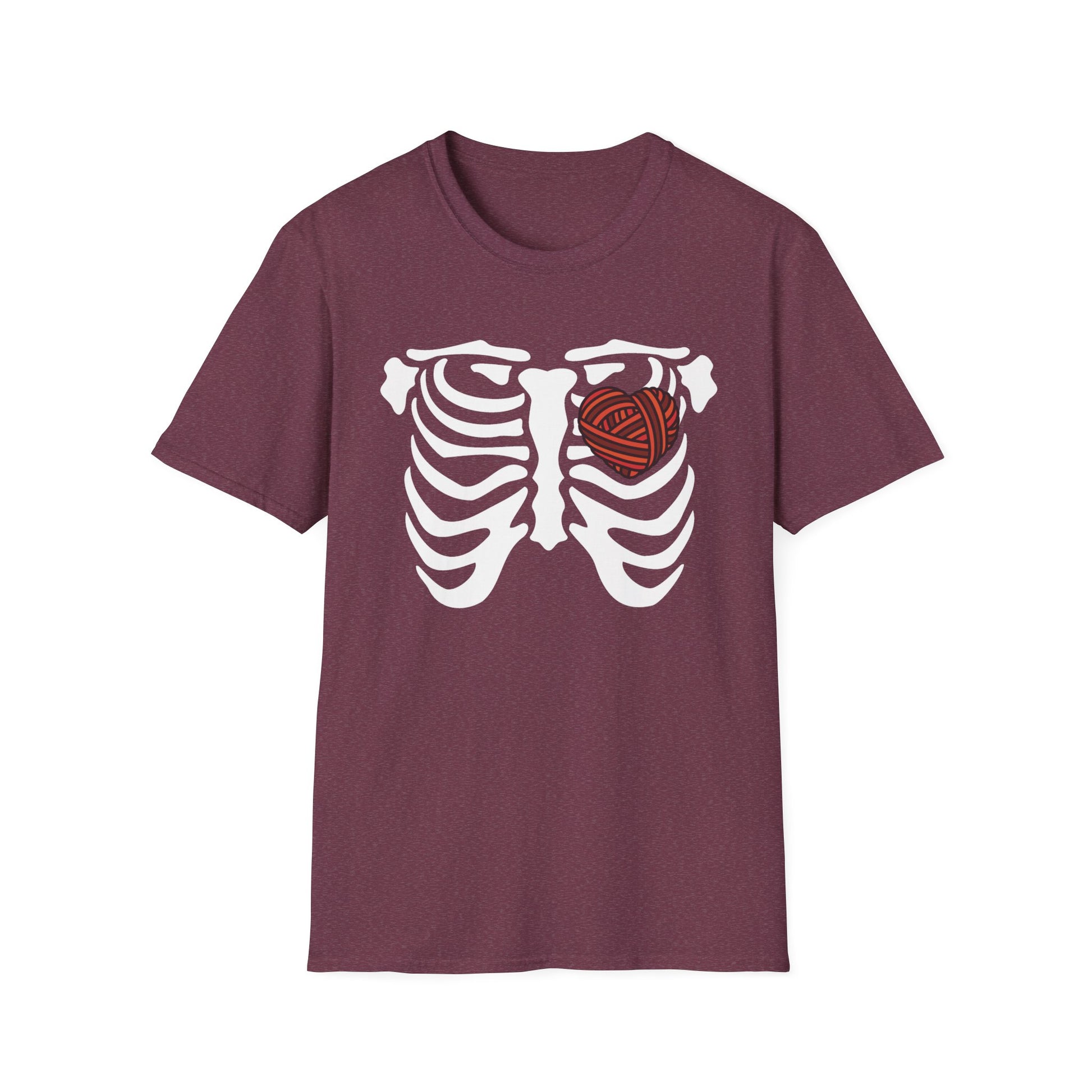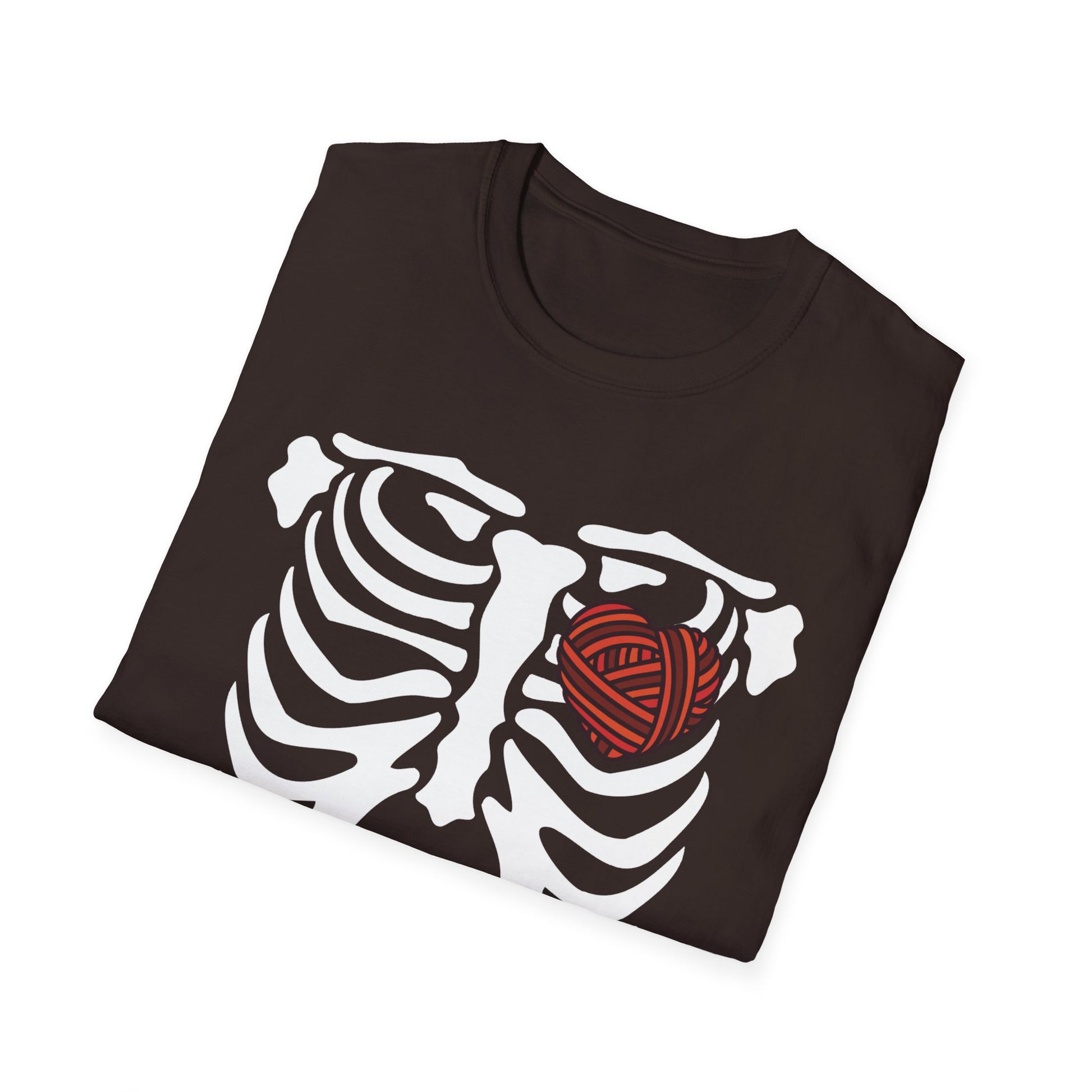Yarn lover’s Skeleton Heart Unisex T-Shirt | Gift for Couples, Fun Graphic Tee, Romantic Apparel, Halloween Shirt, Love Theme